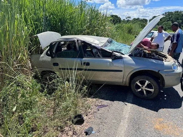 Segundo o condutor, que sofreu somente um arranhão no braço, ele perdeu o controle após cair em buraco, por volta das 11h, desta quarta-feira (3). Além do condutor estavam a bordo a esposa, um filho adolescente, um sobrinho do casal e uma mulher especial. Eles seguiam sentido Ipiaú.