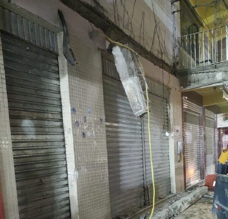 O desabamento de uma marquise sob uma mulher foi registrado na noite deste sábado, 21, em Cruz das Almas.