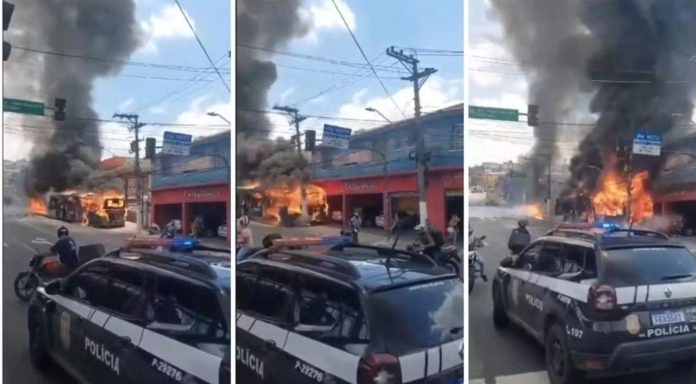 Um ônibus do transporte público de São Paulo pegou fogo no início da tarde desta segunda-feira (25) na Avenida Senador Teotônio Vilela, Cidade Dutra, Zona Sul da capital paulista. Apesar dos danos, ninguém se feriu. As informações são do g1.